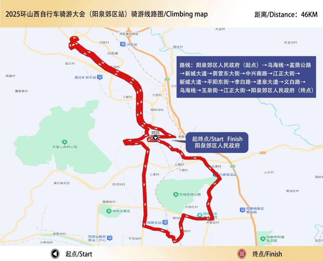 本次骑游大会精心规划了骑游路线,赛道穿梭于城市的繁华街区与自然的秀丽风光之间。沿途,你将领略到阳泉市郊区的独特韵味,感受大自然的鬼斧神工,仿佛在骑行中穿梭于一幅流动的画卷。